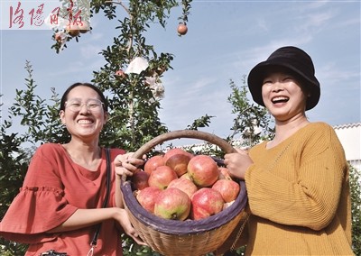 连日来,孟津县常袋镇东地村、小浪底镇石门村等地连片规模种植的优质突尼斯软籽石榴陆续成熟,“甜蜜”上市。这些石榴红的像一盏盏亮起来的小灯笼,青的如温玉一般,令人垂涎欲滴,吸引了大批游客前来观光旅游、休闲采摘。